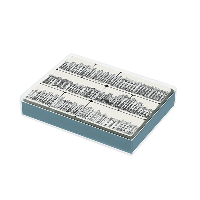 Liefhebber van Amsterdamse erfgoed? Ontdek een doosje met negen magneten met uniek grachtenhuizen motief, ontworpen door Caspar Jacobsz. Deze bijzondere collectie komt uit het prestigieuze Rijksmuseum.