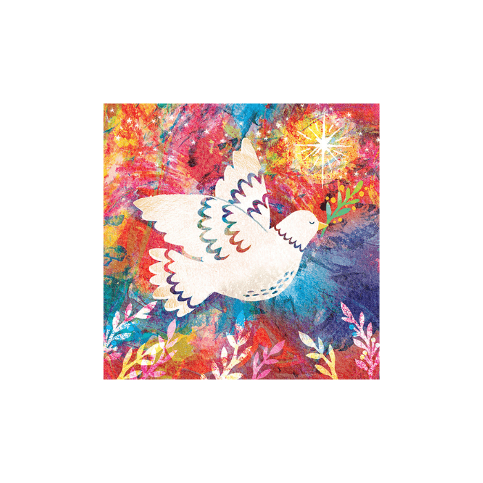 Vier de feestdagen met een betekenisvolle boodschap van vrede en hoop. Deze prachtige kerstkaarten combineren kleurrijke regenboogduiven met de warme sfeer van Kerst.