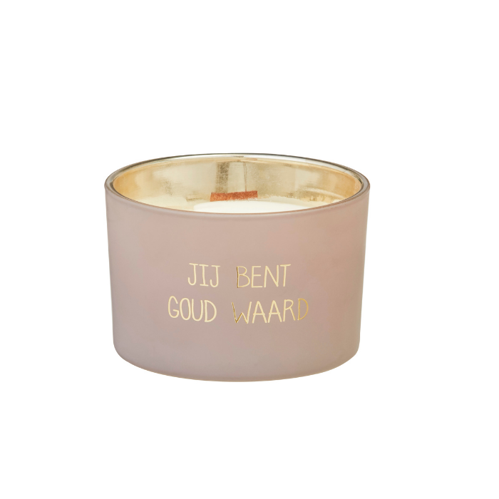 Deze "Jij Bent Goud Waard" kaars is meer dan alleen een lichtpuntje. Het is een betekenisvol cadeau waarmee je iemand laat weten hoe waardevol ze voor je zijn. De elegante uitvoering met de gouden accenten symboliseert precies wat je wilt uitdrukken: deze persoon is kostbaar en onmisbaar in jouw leven.