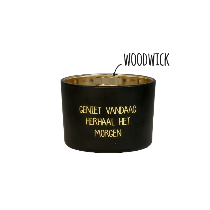 Deze stijlvolle sojakaars (70 x 70 x 60 mm) is meer dan alleen een lichtbron. De inspirerende tekst "Geniet vandaag, herhaal het morgen" herinnert je eraan om van elk moment te genieten en bewust te leven. De kaars is gemaakt van premium biologische sojawas in een elegant glazen houder, waardoor hij perfect past in elk interieur.