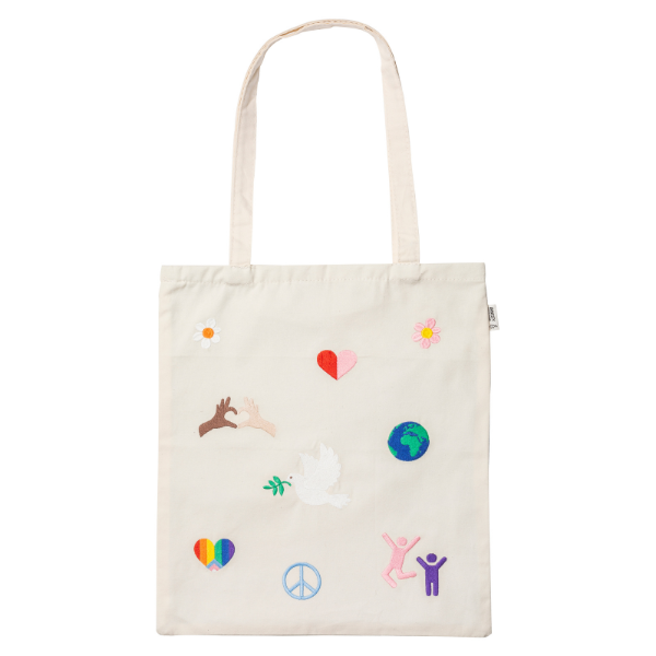 Tas voor een mooie boodschap: Hij past goed bij je outfit en bij je hart. Want met deze tas steun je de strijd voor mensenrechten. Een bloem, hart en wereldbol: op de voorkant vind je vrolijke vrijheidssymbolen. En achterop een klein Amnesty-logo. Met deze tas van duurzaam katoen laat jij zien waar je voor staat.