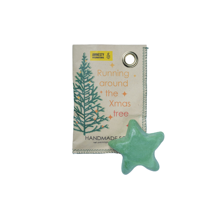 Maak je kerstfeest compleet met dit charmante zeepzakje dat niet alleen je huid verwent, maar ook bijdraagt aan mensenrechten wereldwijd.